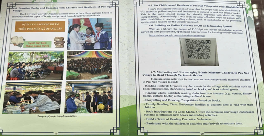 Điều làm nên thành công của Khánh Huyền tại Cuộc thi không chỉ là những cảm nhận sâu sắc về cuốn sách hay tác động của cuốn sách đến tư duy của em. Mà chính từ nhận thức đó Khánh Huyền đã chuyển thành hành động. Khánh Huyền lan tỏa cảm hứng đam mê đọc sách của mình bằng cách thực hiện dự án "Thắp sáng Tri thức - Thúc đẩy Văn hoá đọc cho trẻ em dân tộc thiểu số”. Dự án đã thu hút được sự quan tâm của đoàn viên thanh niên nhà trường, cùng chung tay xây dựng “Thư viện xanh” tặng sách cho trẻ em dân tộc thiểu số tại thôn Pró Ngó - xã Quảng Lập, giúp các em học sinh dân tộc thiểu số ở vùng khó khăn có điều kiện được tiếp cận với sách.